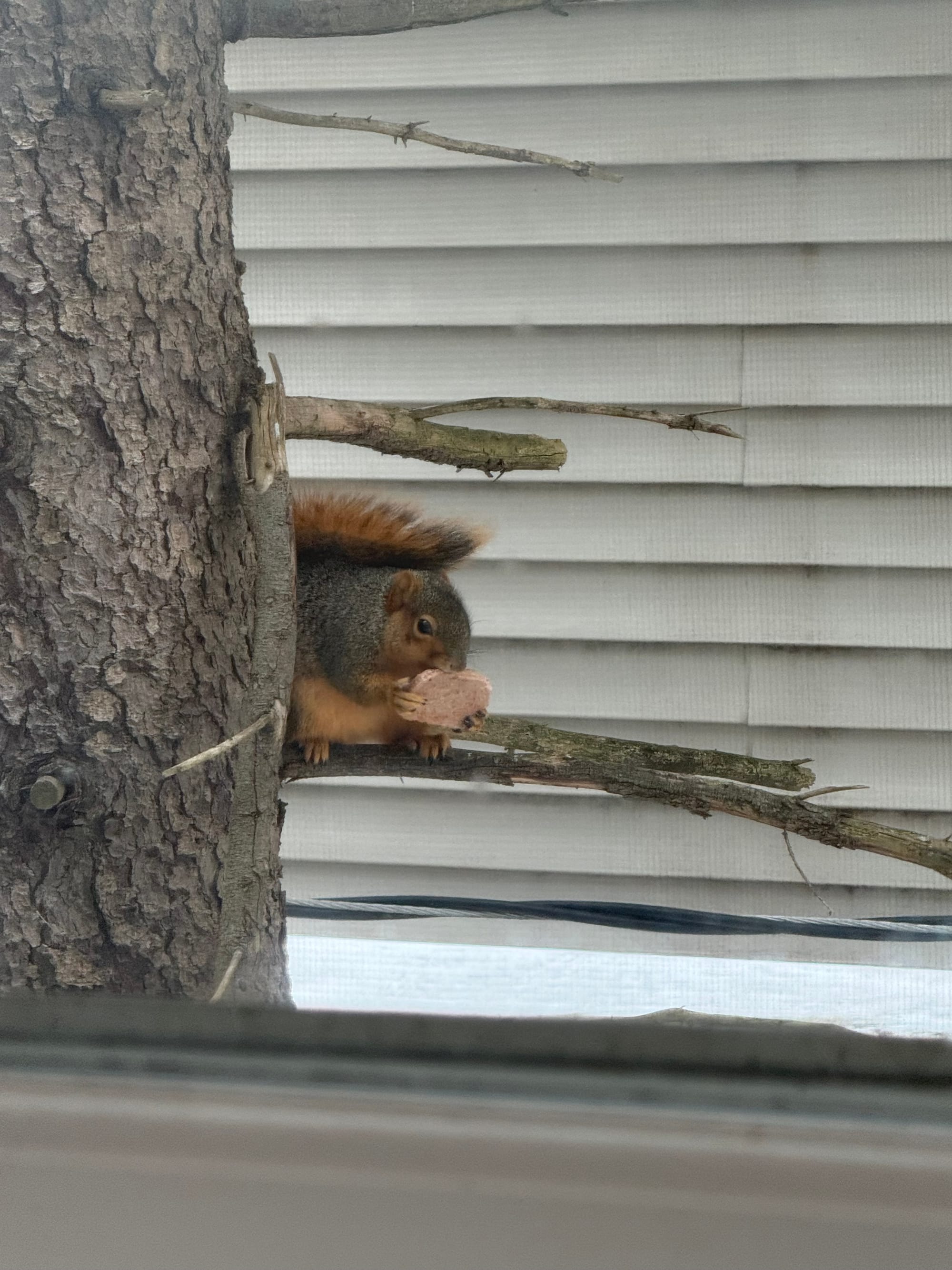 For your news letter, fat squirrel eating someone’s garbage